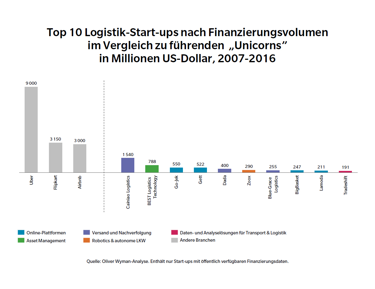 Als Standort global führender Unternehmen wie Kühne + Nagel und Panalpina nimmt die Schweiz weltweit eine der Spitzenpositionen in der Logistik ein. Der Gesamtumsatz der Branche in der Schweiz liegt bei gut 40 Milliarden Schweizer Franken pro Jahr. Ob die Schweiz Branchenprimus bleibt, hänge auch davon ab, „wie es den Logistikern gelingt, ihr Geschäft zu digitalisieren“, sagt Max-Alexander Borreck, Principal bei Oliver Wyman: „Viele Logistiker tun sich schwer, mit dem Tempo der Digitalisierung Schritt zu halten. Start-ups hingegen sind flexibel und müssen nicht auf gewachsene Strukturen Rücksicht nehmen. Und sie beherrschen dieselben Big-Data-Ansätze wie die Start-ups aus der Personenmobilität, für die Uber das bekannteste Beispiel ist. Mit dieser Agilität und diesem Wissen können die innovativen Newcomer zu Schrittmachern der Branche werden.“