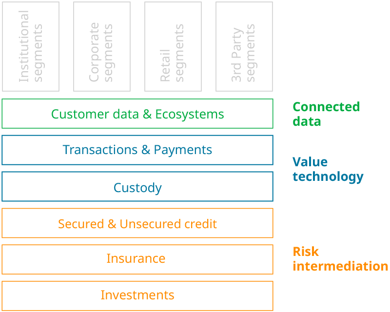 Risk intermediation services. We define this as any service that involves matching those who have money with those who need it, while the provider takes some financial risk along the way — be that credit risk, market risk, interest rate risk, and so on. Of course this is the core of the incumbent industry, risk intermediation services are now extremely high capital intensive, and with ultra-low interest rates for a decade they have been in low-growth mode. No doubt the shift to rising interest rates will change this and lead to better returns for risk intermediation services, but the penetration of risk intermediation services with customers is mature if not saturated, so the growth is akin to a rising tide lifting all boats, not new value creation as defined by new services to new customers.